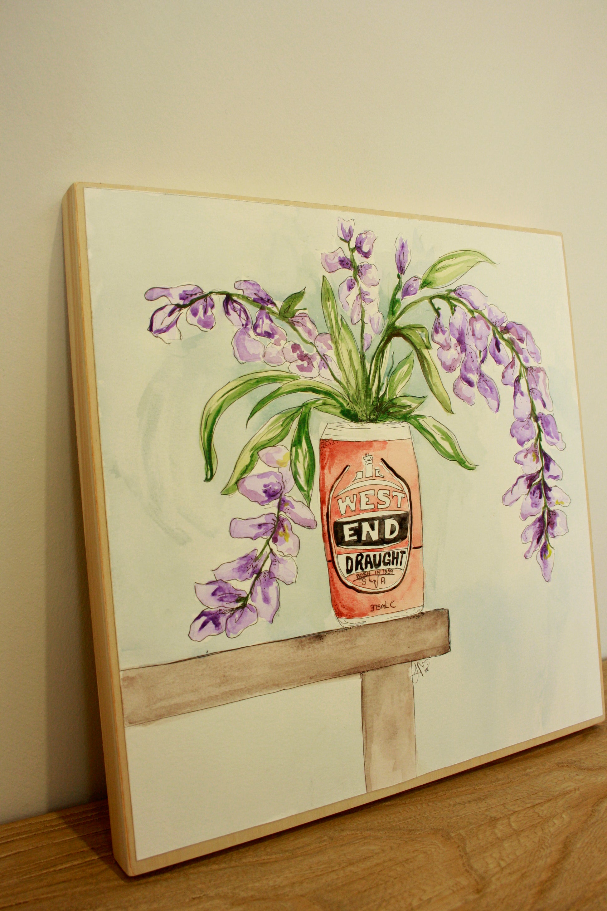 Watercolour paper mounted on timber board